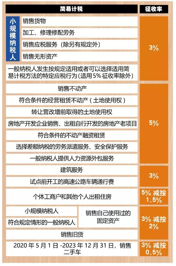 小規模及適用簡易計稅的一般納稅人增值稅稅率表