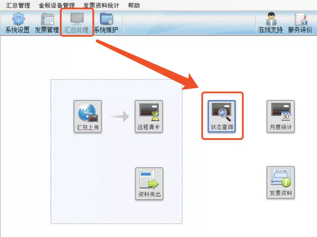 操作流程:點擊【匯總處理】-【狀態查詢】-【增值稅專用發票及增值稅普通發票】。